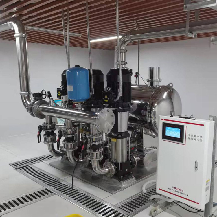 此次提升改造項(xiàng)目采用新型無負(fù)壓供水系統(tǒng)代替原有以水箱水池蓄水為基礎(chǔ)的二次供水系統(tǒng),對市政管網(wǎng)居民用水的水質(zhì)監(jiān)測提出了更高要求。