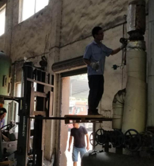 △勞動人民的智慧還是無窮的,現場技術因為高度不夠動用了叉車。