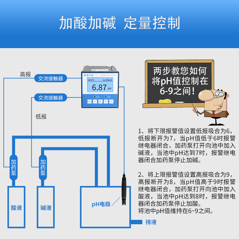pH/ORP 控制器廣泛應(yīng)用于火電、化工化肥、冶金、環(huán)保、制藥、生化、食品和自來水等行業(yè),對溶液中pH 值或ORP值和溫度連續(xù)監(jiān)測。連續(xù)監(jiān)測數(shù)據(jù)通過變送輸出連接記錄儀實(shí)現(xiàn)遠(yuǎn)傳監(jiān)控與記錄。