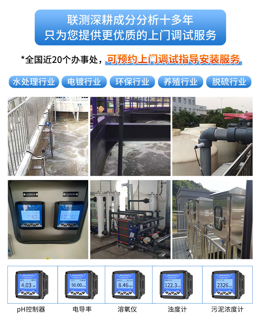 應用行業 聯測SIN-DC2000/2100為水質通用型控制器,適用于與本公司多種水質系列數字傳感器配套使用,用于監測包括 pH、ORP、電導率、溶解氧、濁度、污泥濃度等水質參數。