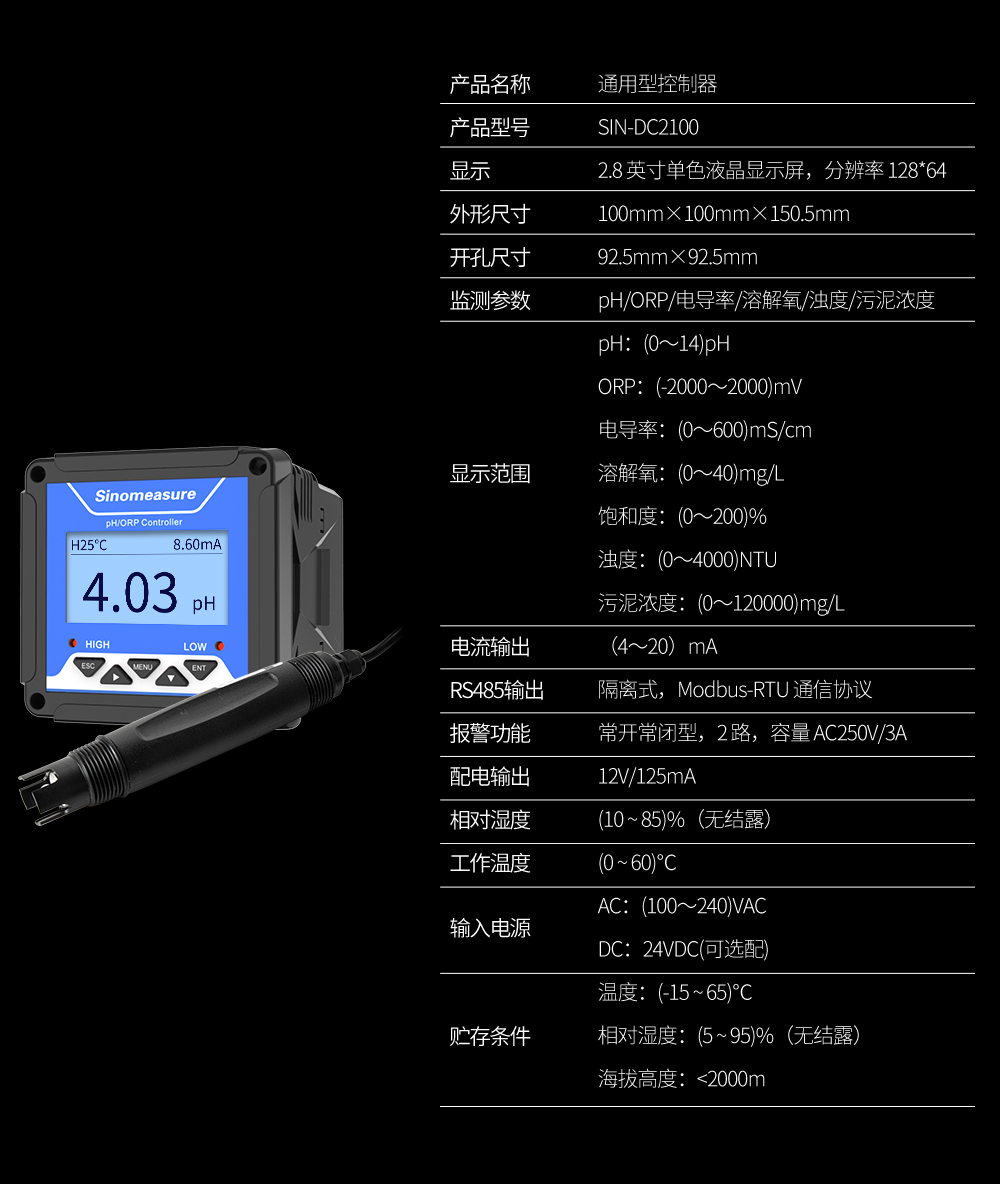 聯測儀表SIN-DC2000/2100為水質通用型控制器,適用于與本公司多種水質系列數字傳 感器配套使用,用于監測包括 pH、ORP、電導率、溶解氧、濁度、污泥 濃度等水質參數,監測的參數通過 RS485 或電流變送輸出到監控室進行 記錄保存。