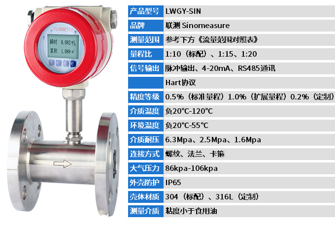 聯測LWGY-SIN液體渦輪流量計是一種速度式儀表,它具有準確度高、重復性好、結構簡單、壓力損失小、維修方便等優點,用于測量封閉管道中低粘度液體的體積流量。在石油、化工、冶金、供水、造紙等行業中具有廣泛的應用。